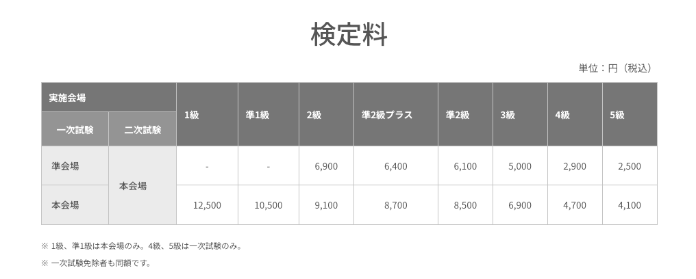 - 検定料は2級とほぼ同じ(本会場8,700円)