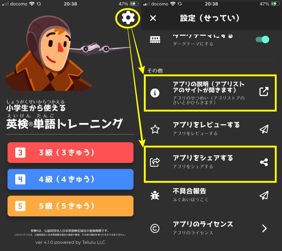 さて、表題の件につきまして、当社開発のスマートフォン向けアプリ「小学生からの英検®単語[3級・4級・5級]〜ふりがな・例文・音声付き英検単語1日5分トレーニング〜」をバージョン4.1.0にアップデート致しました。